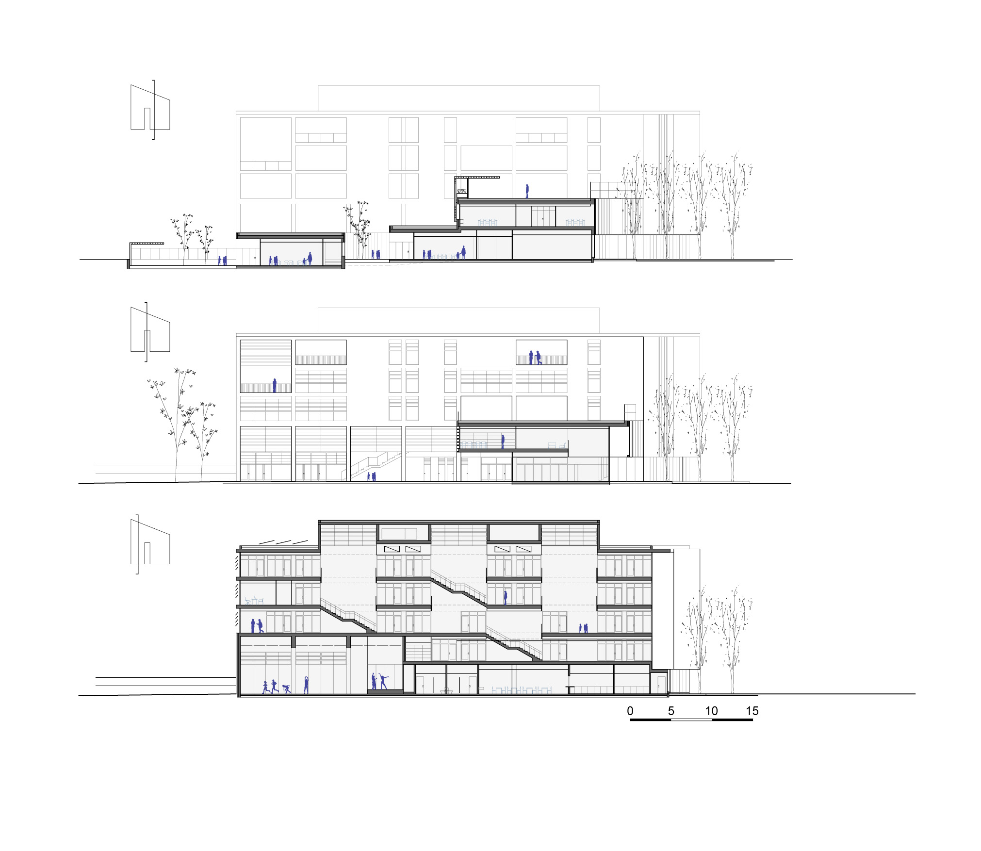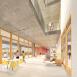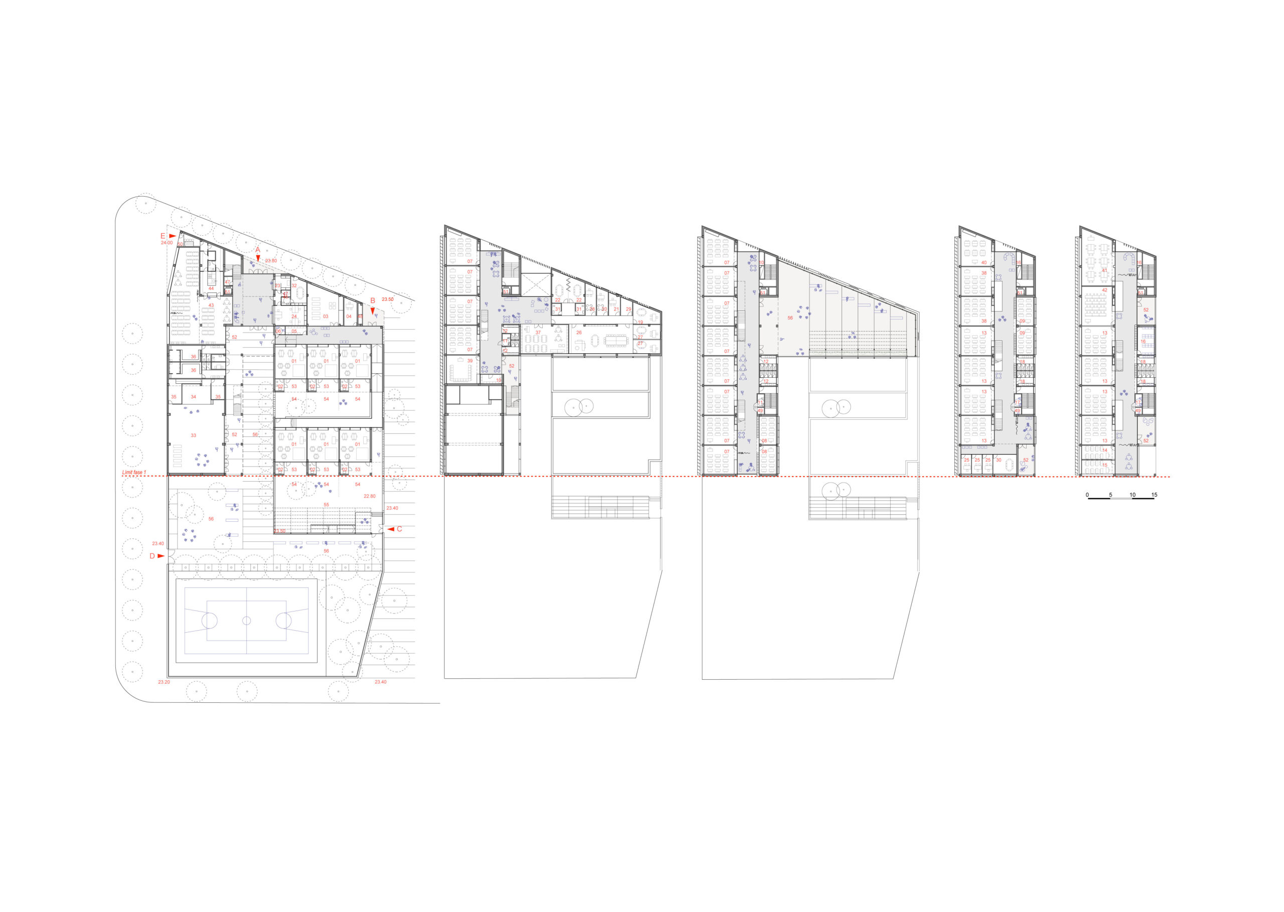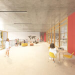 L’edifici incorpora estratègies tant passives com actives per millorar l’eficiència energètica i el confort. I està basat en un eix que organitza l’edifici i distribueix la circulació. Connecta les àrees comunes: entrada principal, menjador, gimnàs, vestidors, zona infantil, porxo, pista esportiva i zona de pati verd. Una zona verda i temperada que genera un microclima i serveix com a pulmó per a l’edifici.